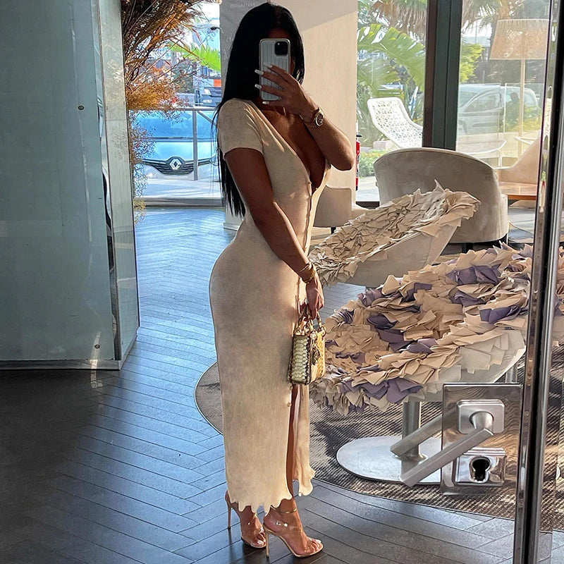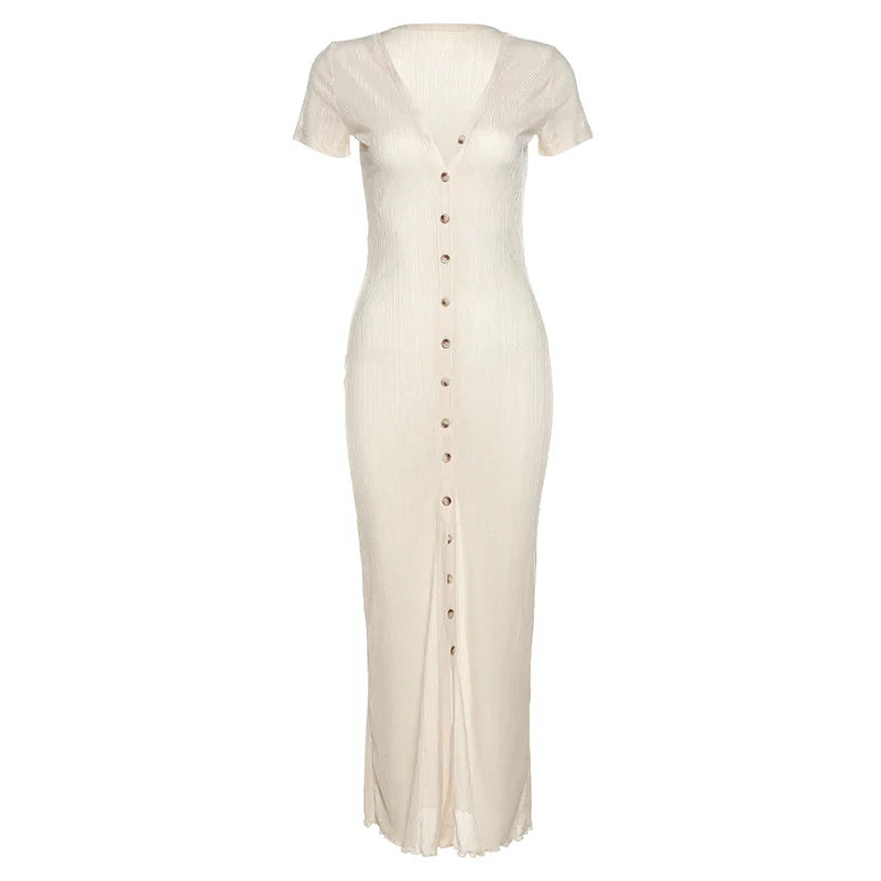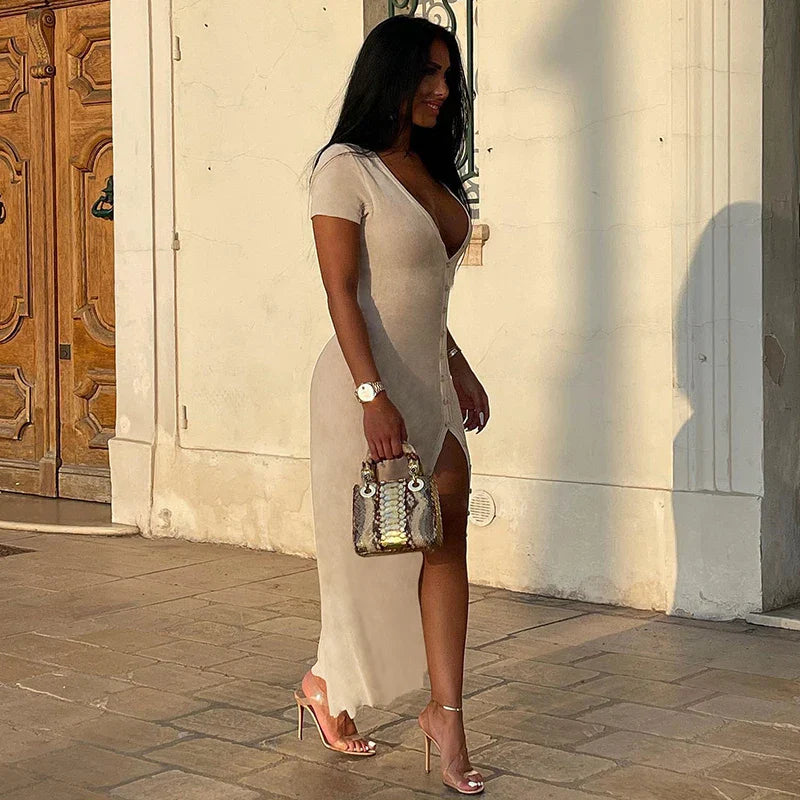 Elegant V-neck Button Down Maxi Dress